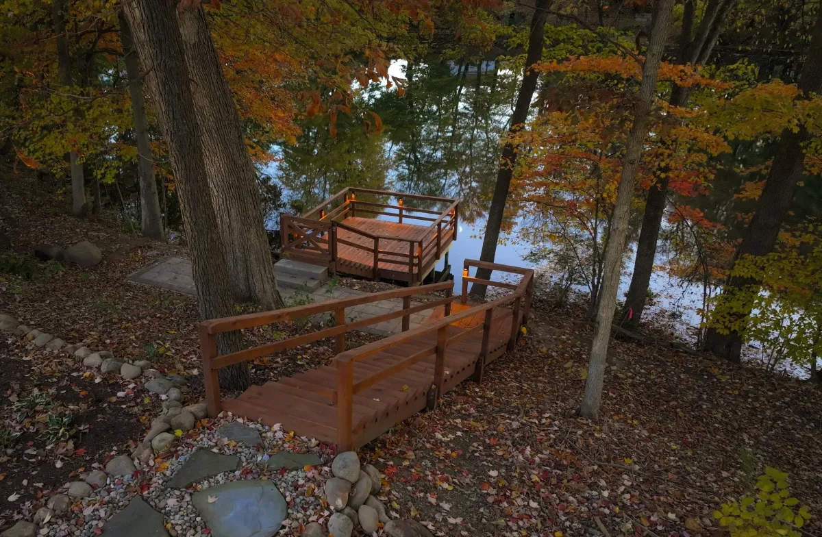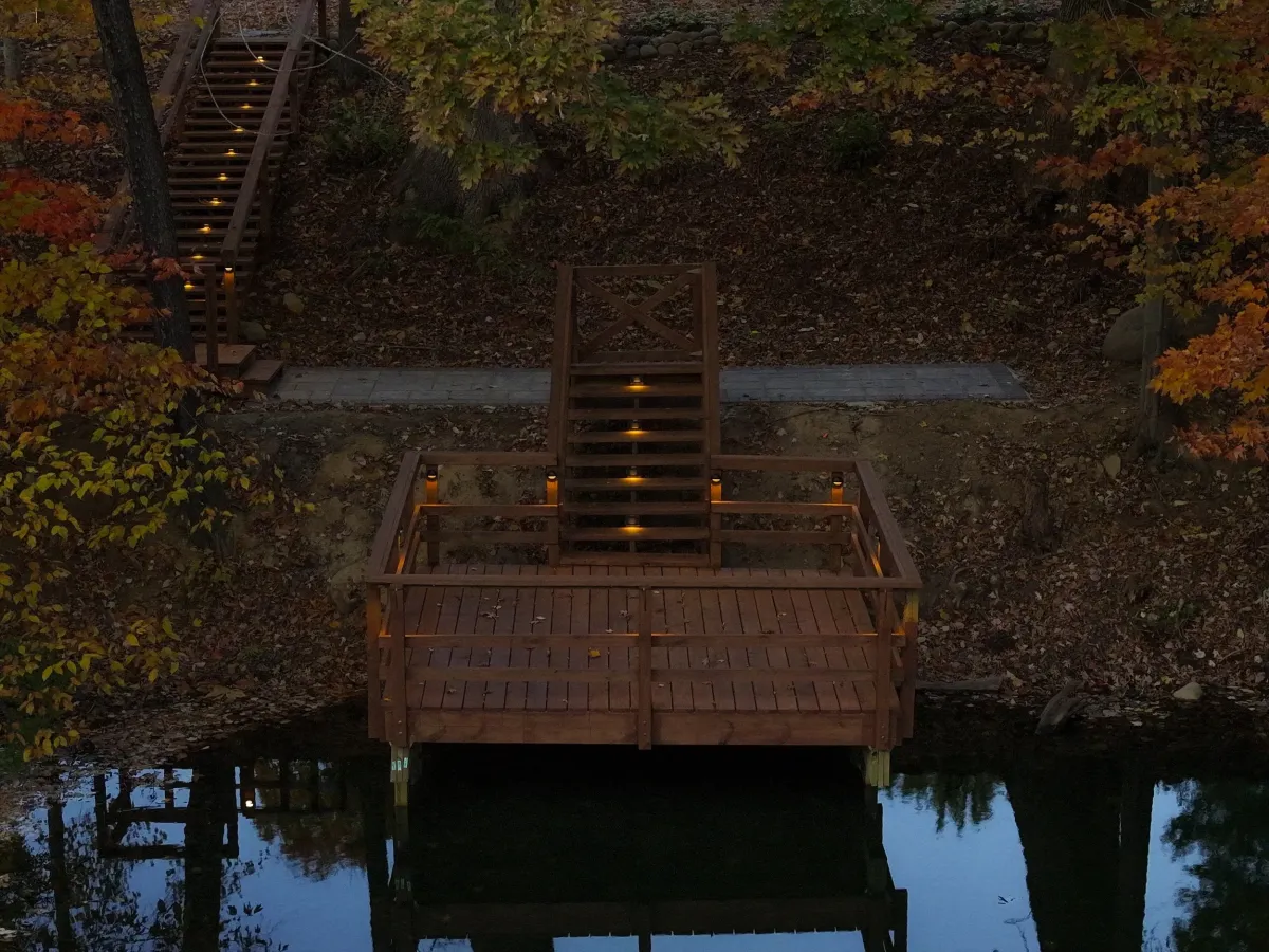 Custom paver patio + lakefront dock build in Copley, Ohio